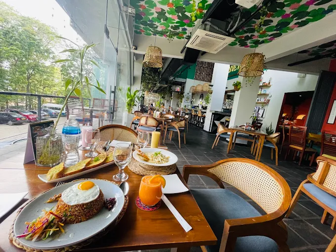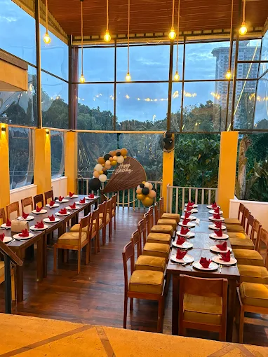 A jungle-themed dining destination combining lush décor with a creative multicuisine menu. From Indian, Thai, Western, and Asian dishes to craft cocktails, guests can enjoy live entertainment and dine across distinct spaces, including a terrace, lounge, and ground-floor dining area overlooking the lakeside.